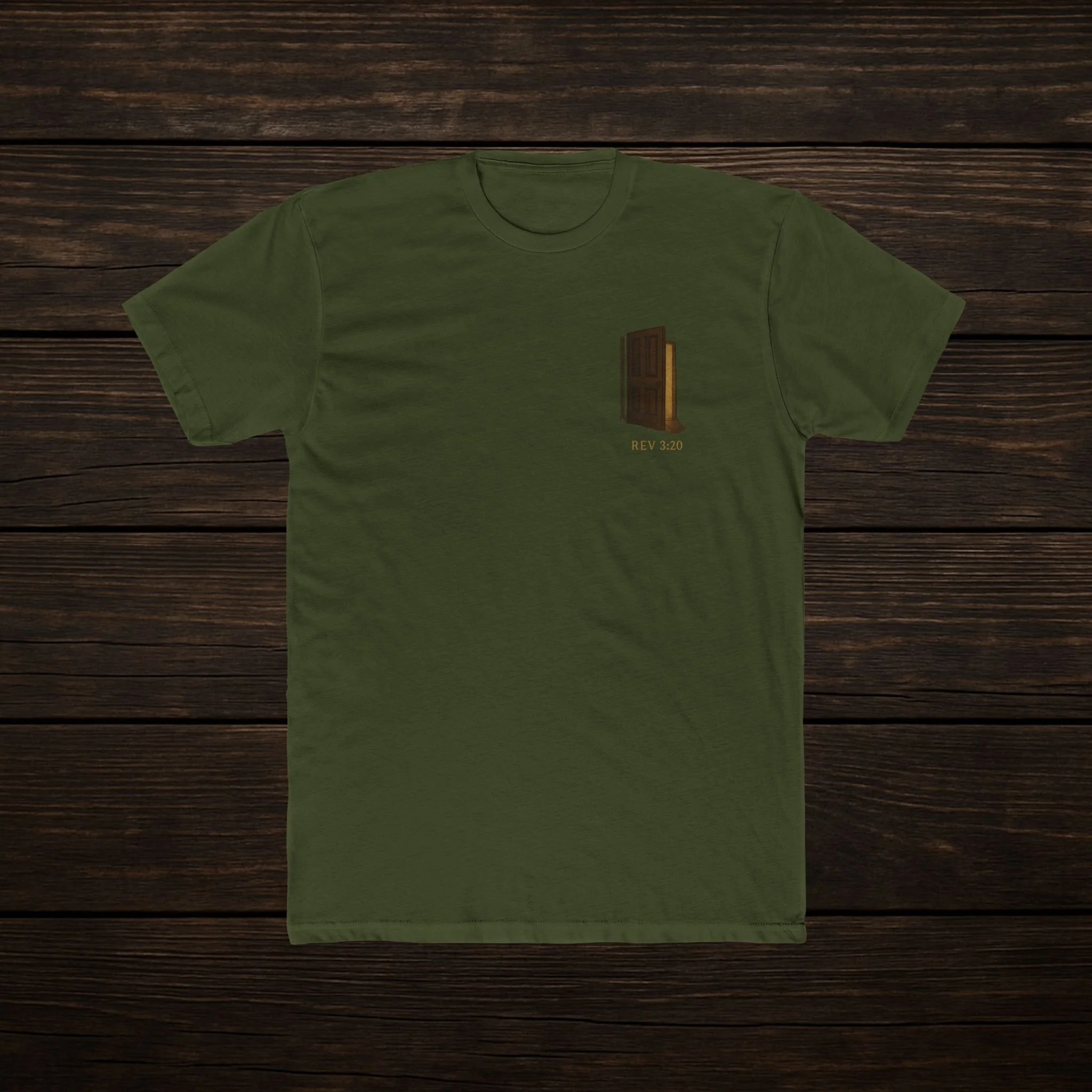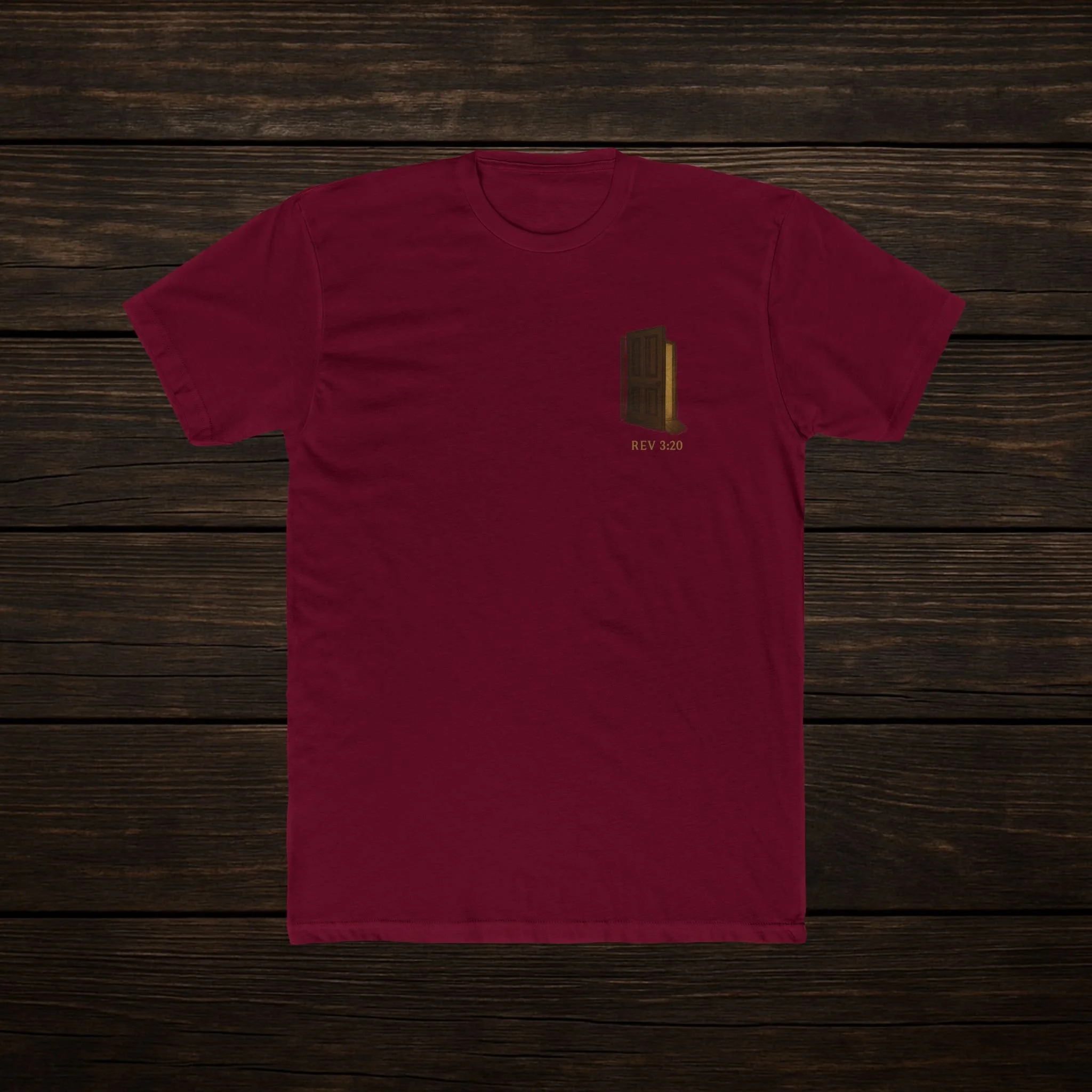 This faith-inspired tee brings Revelation 3:20 to life with a beautifully illustrated open door and the timeless reminder: “Behold, I stand at the door and knock.”