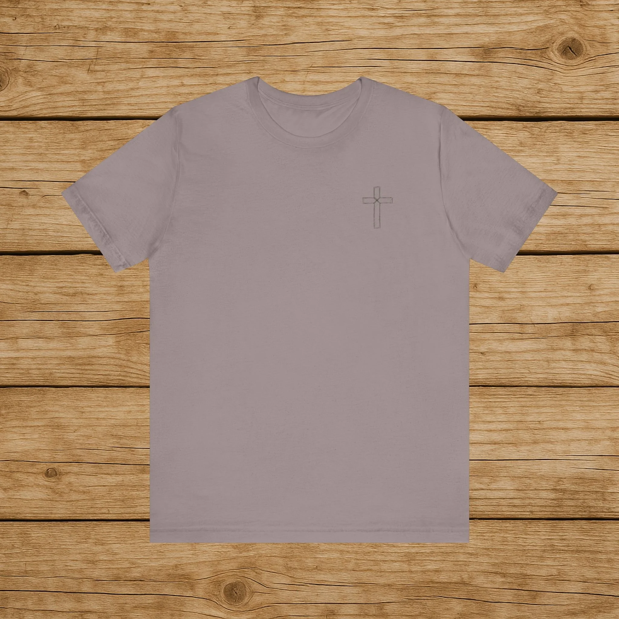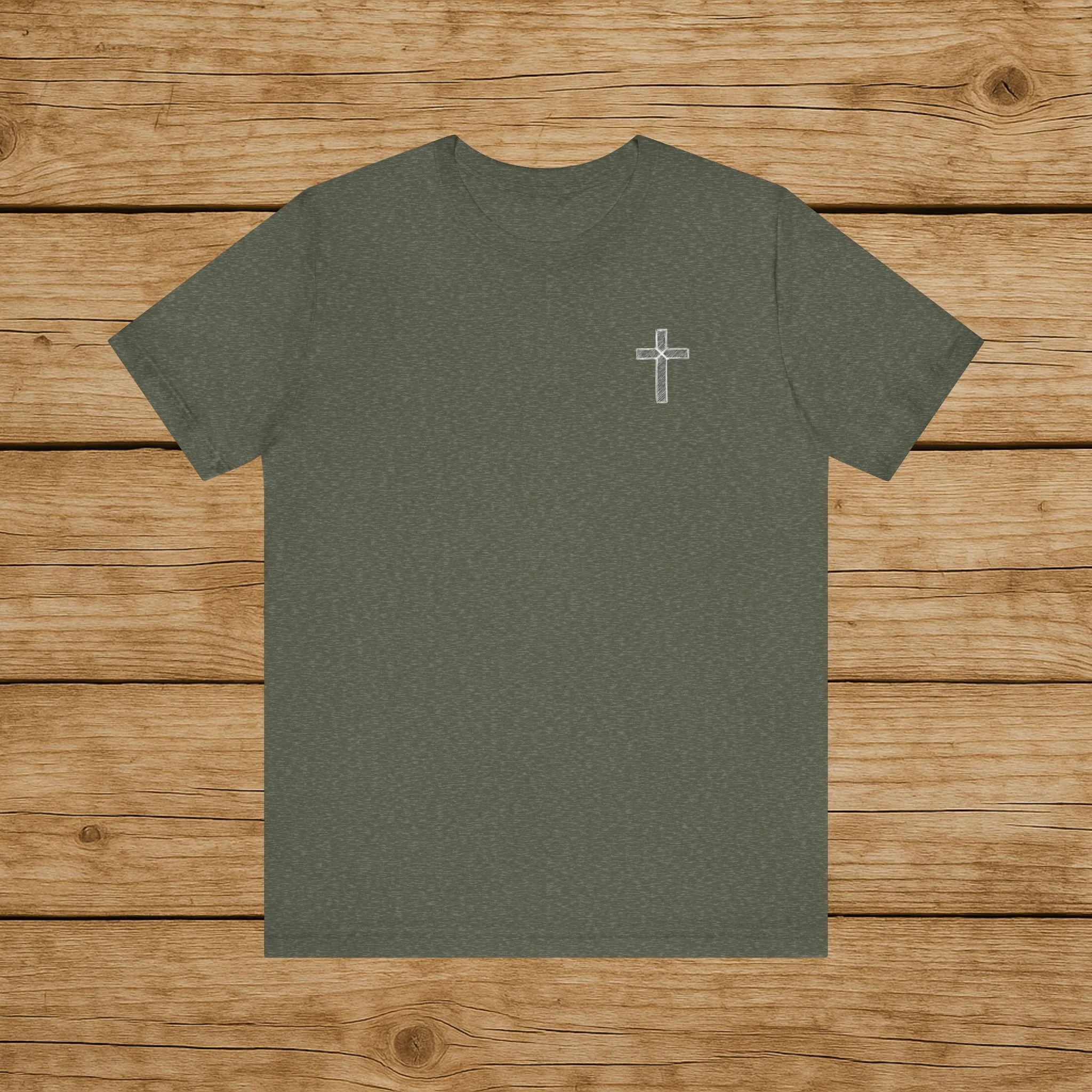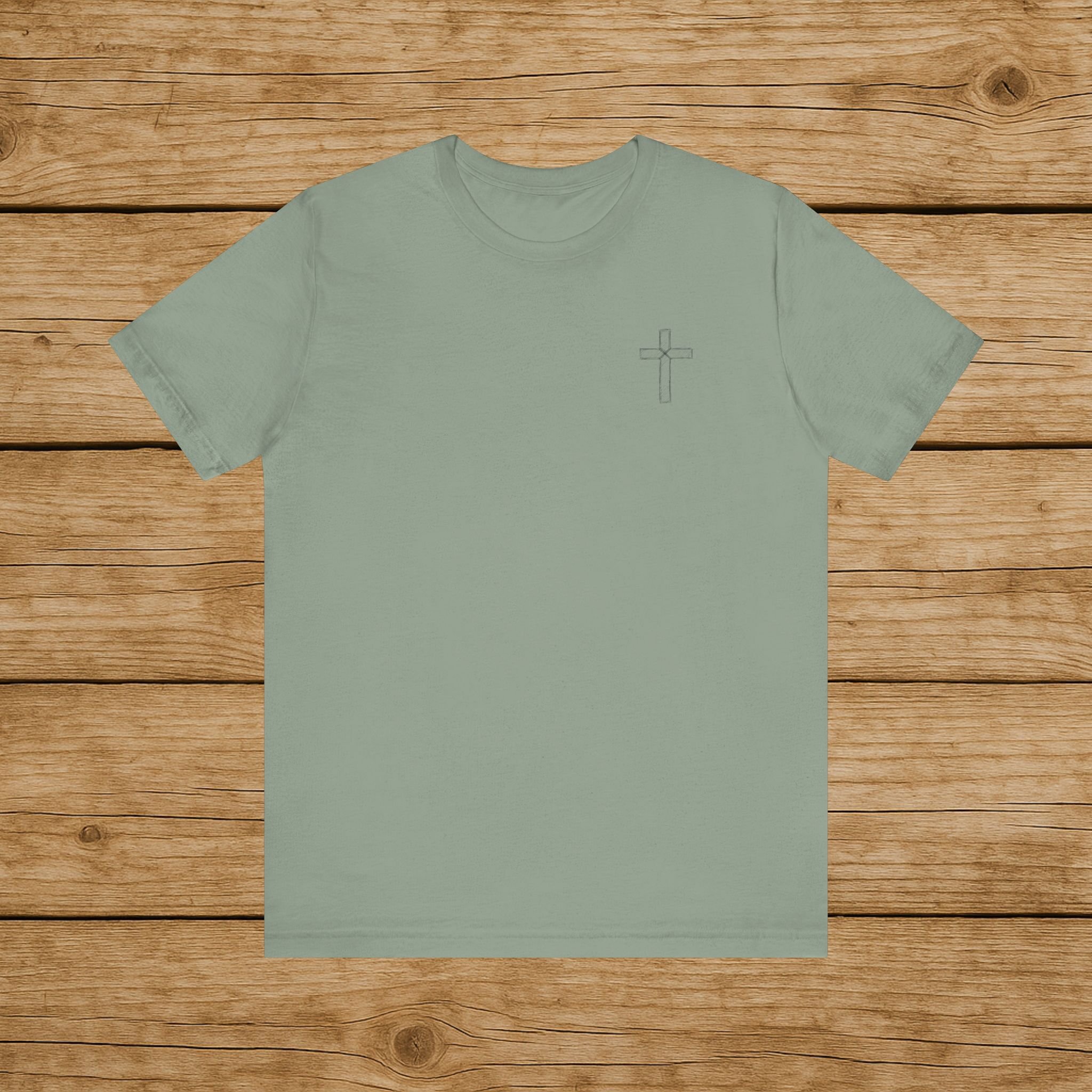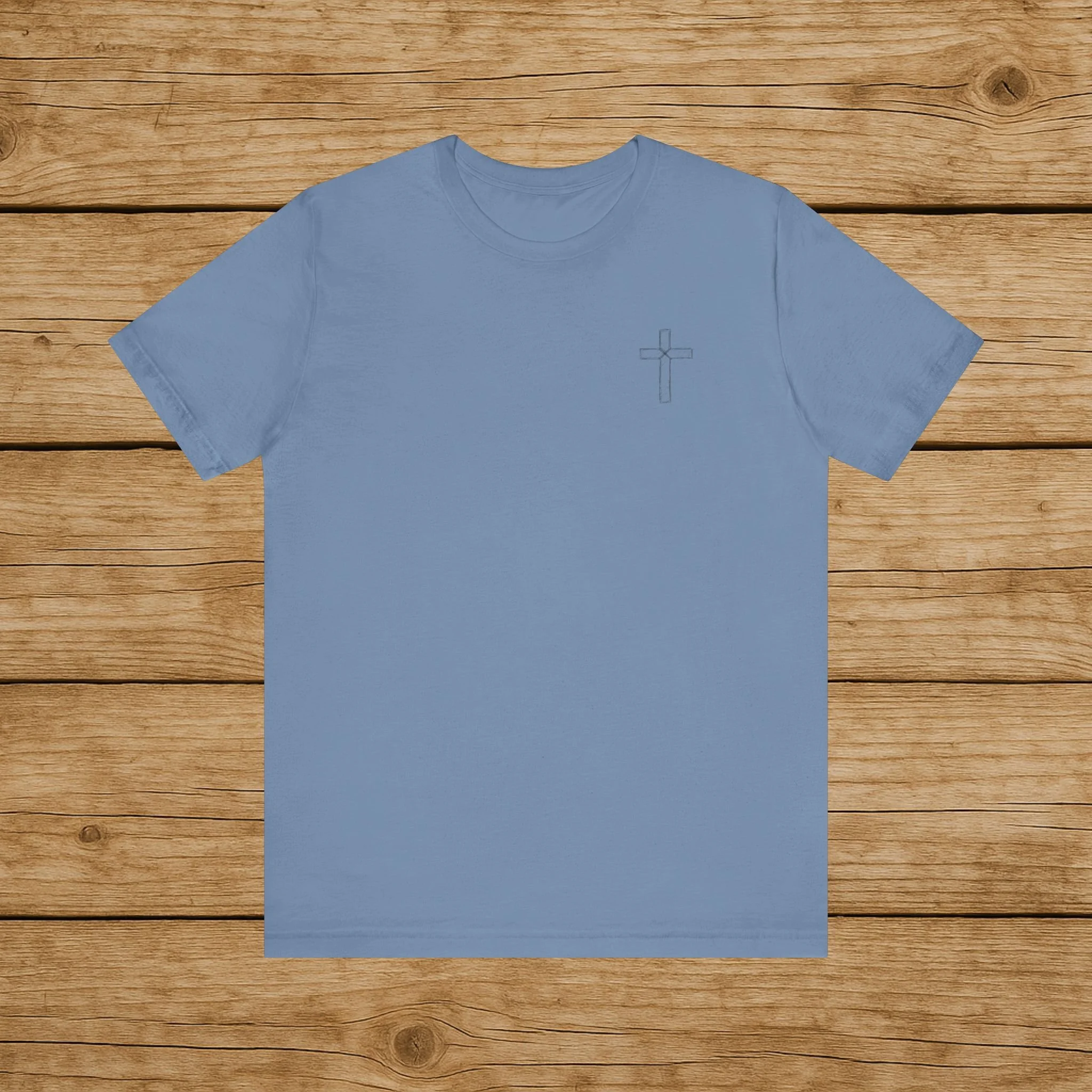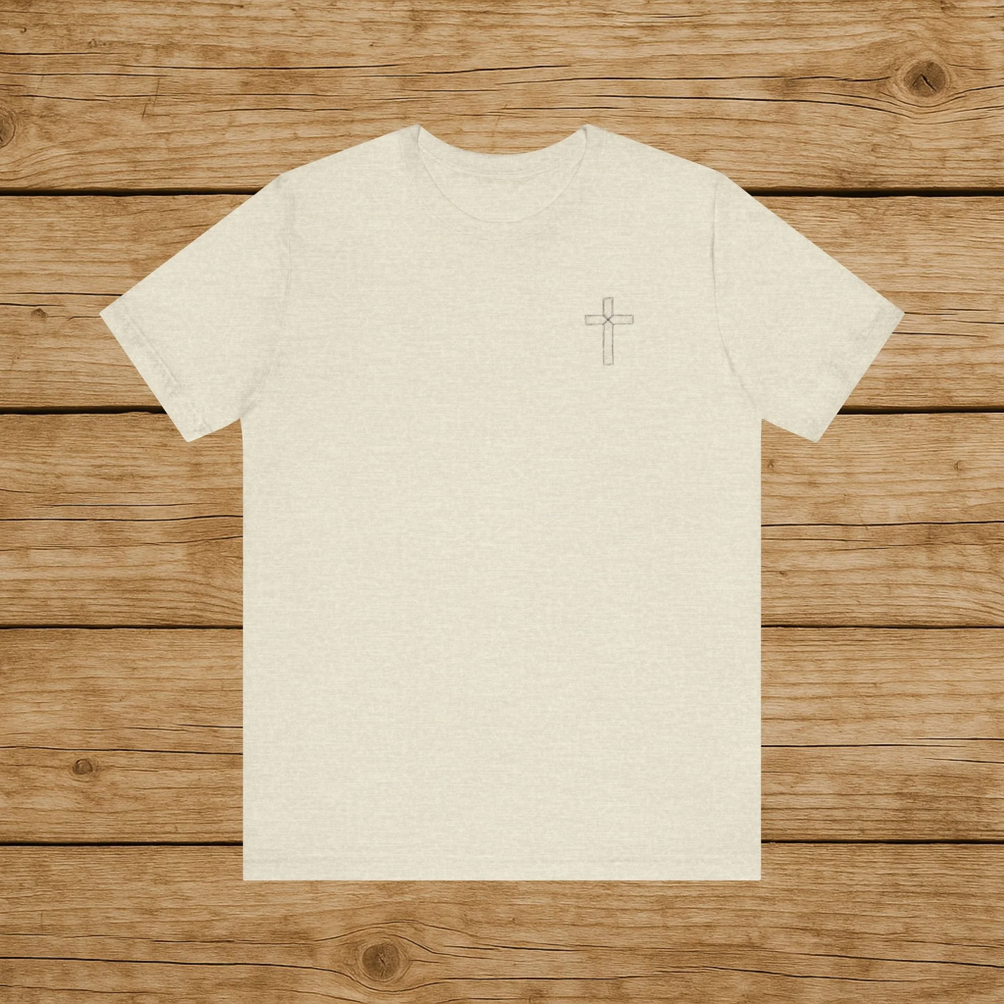 Perfect for believers who want to carry a message of invitation, hope, and grace into everyday life, this design features a subtle pocket-sized front print and a bold full-back graphic — a meaningful conversation starter no matter where you go.