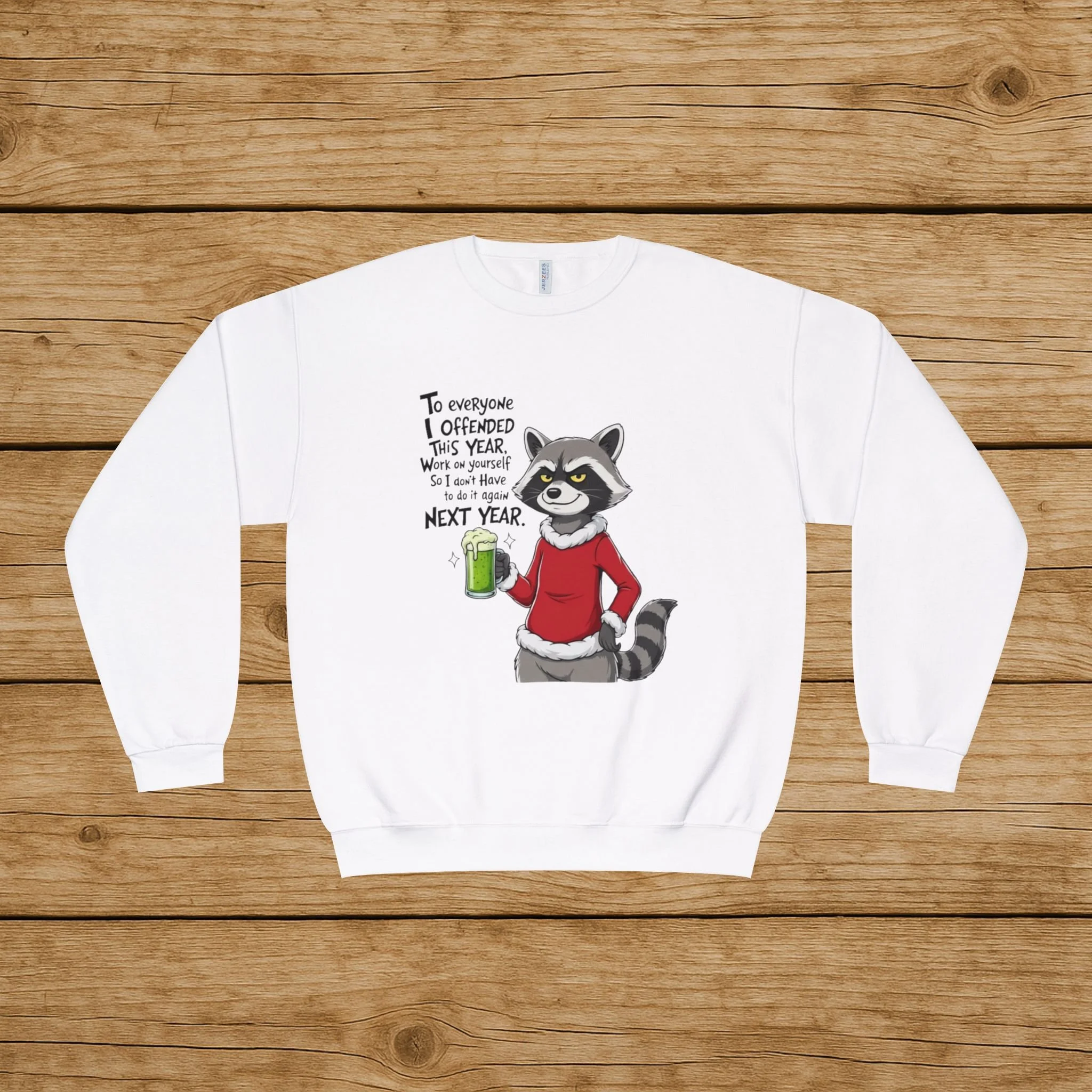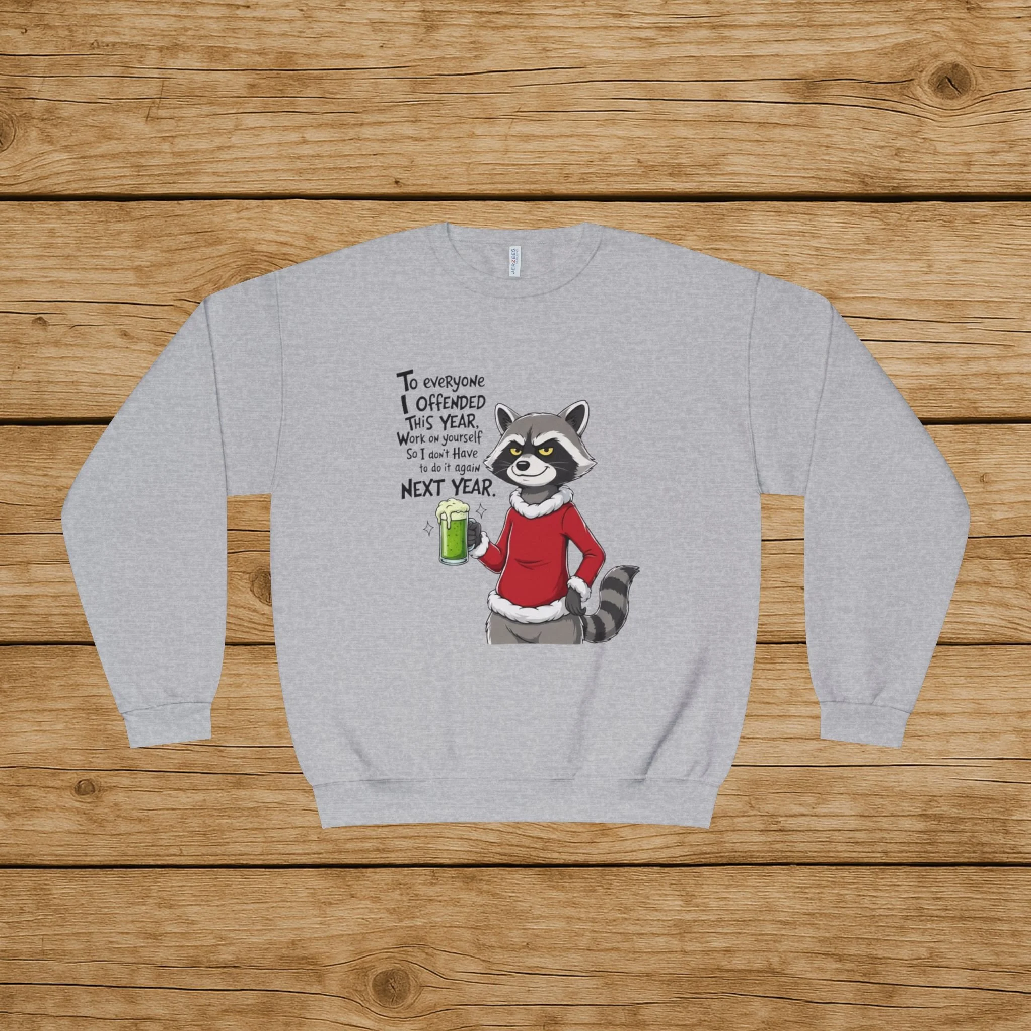 Funny Christmas Sweatshirt — Offended You This Year Raccoon Crewneck, Sarcastic Holiday Sweater, Xmas Humor Shirt, Comfort Color/Unisex Gift