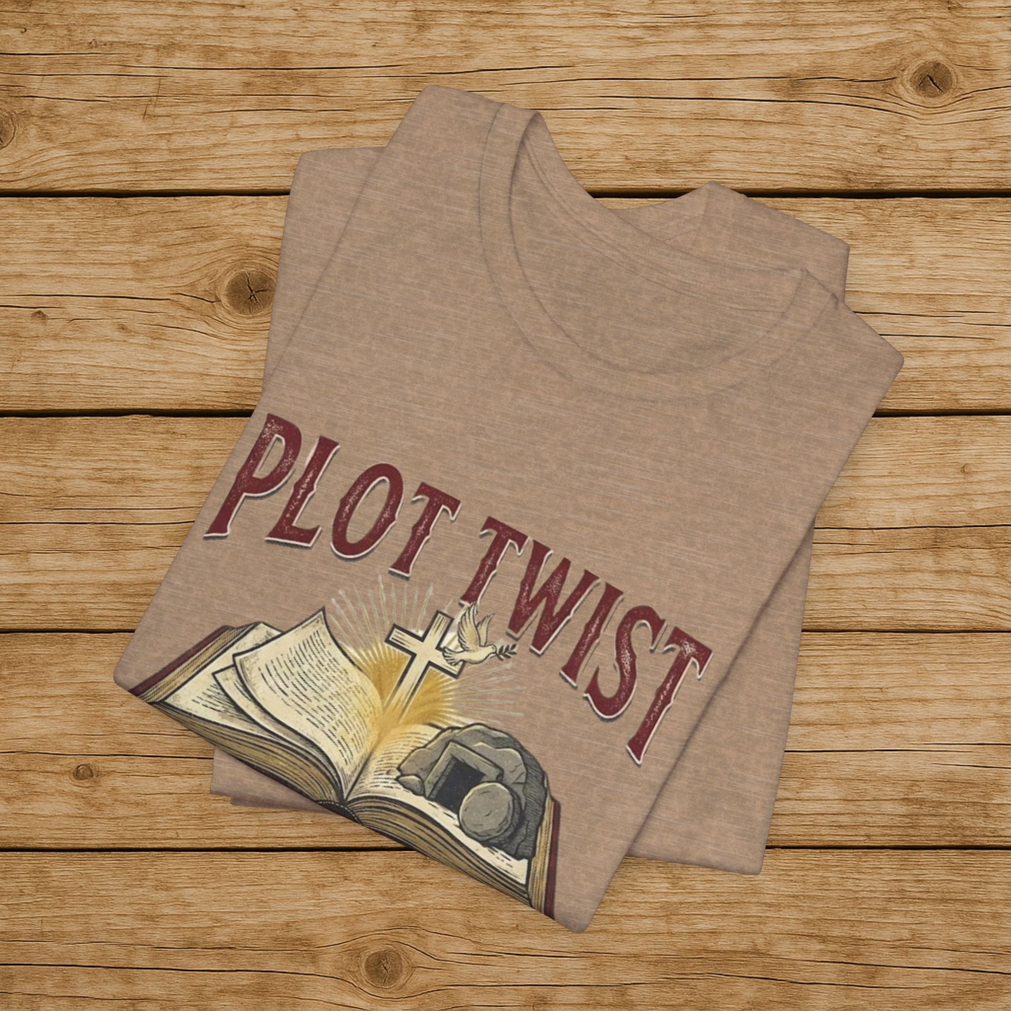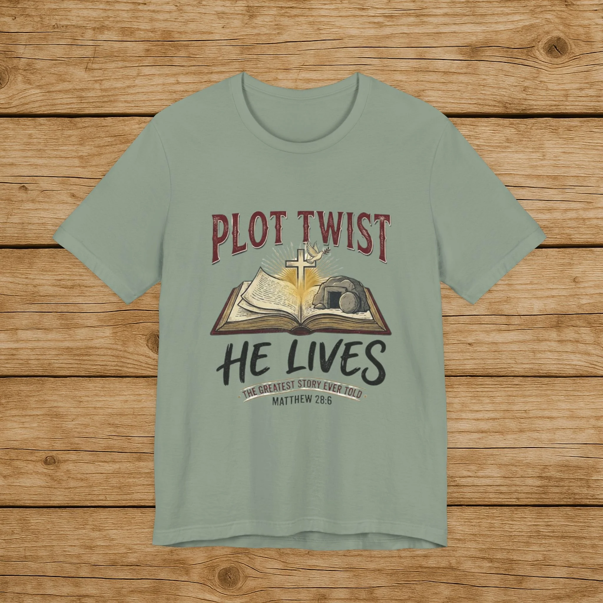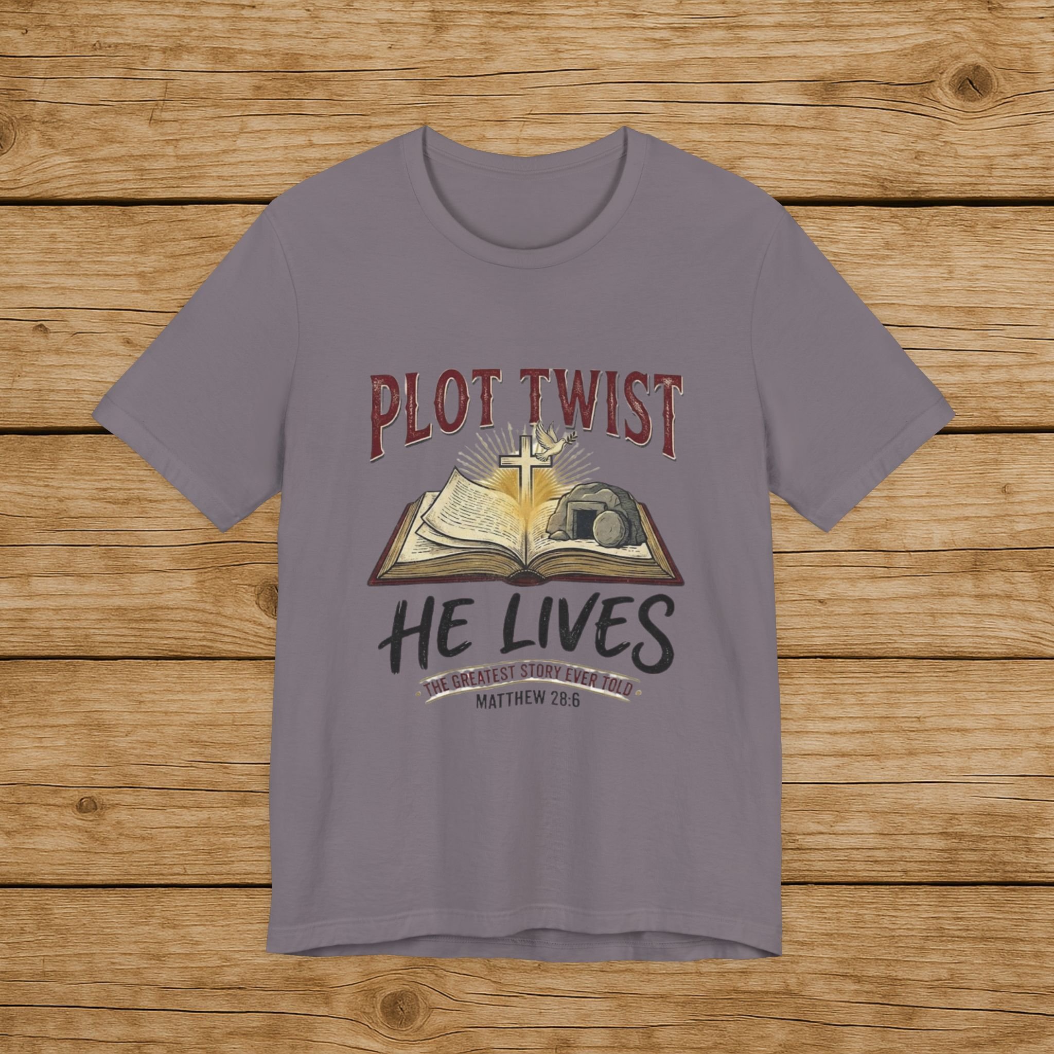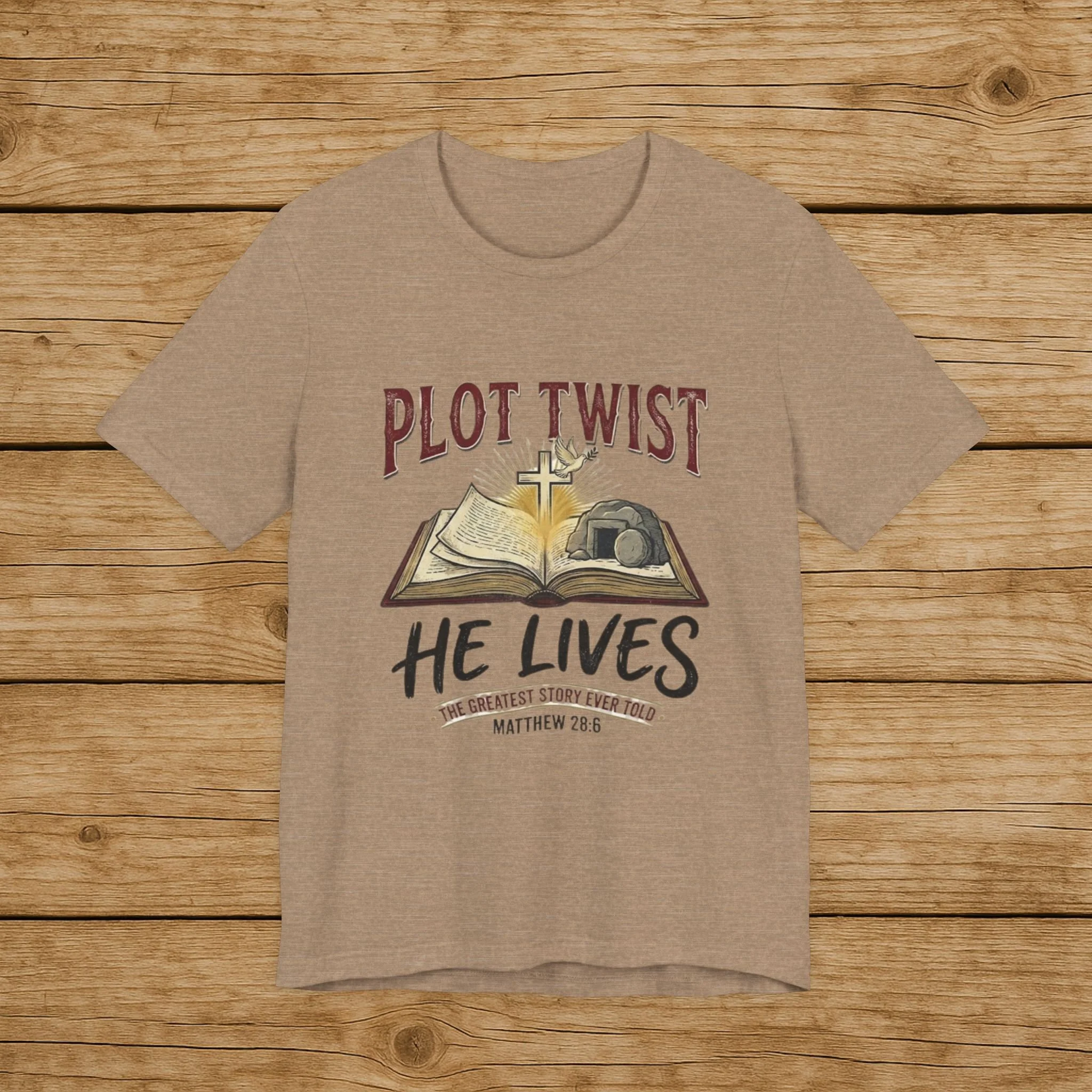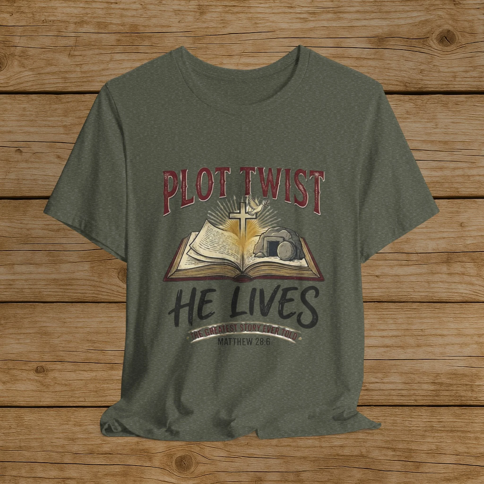Plot Twist He Lives T-Shirt — Christian Easter Bible Verse Tee (Matthew 28:6)
