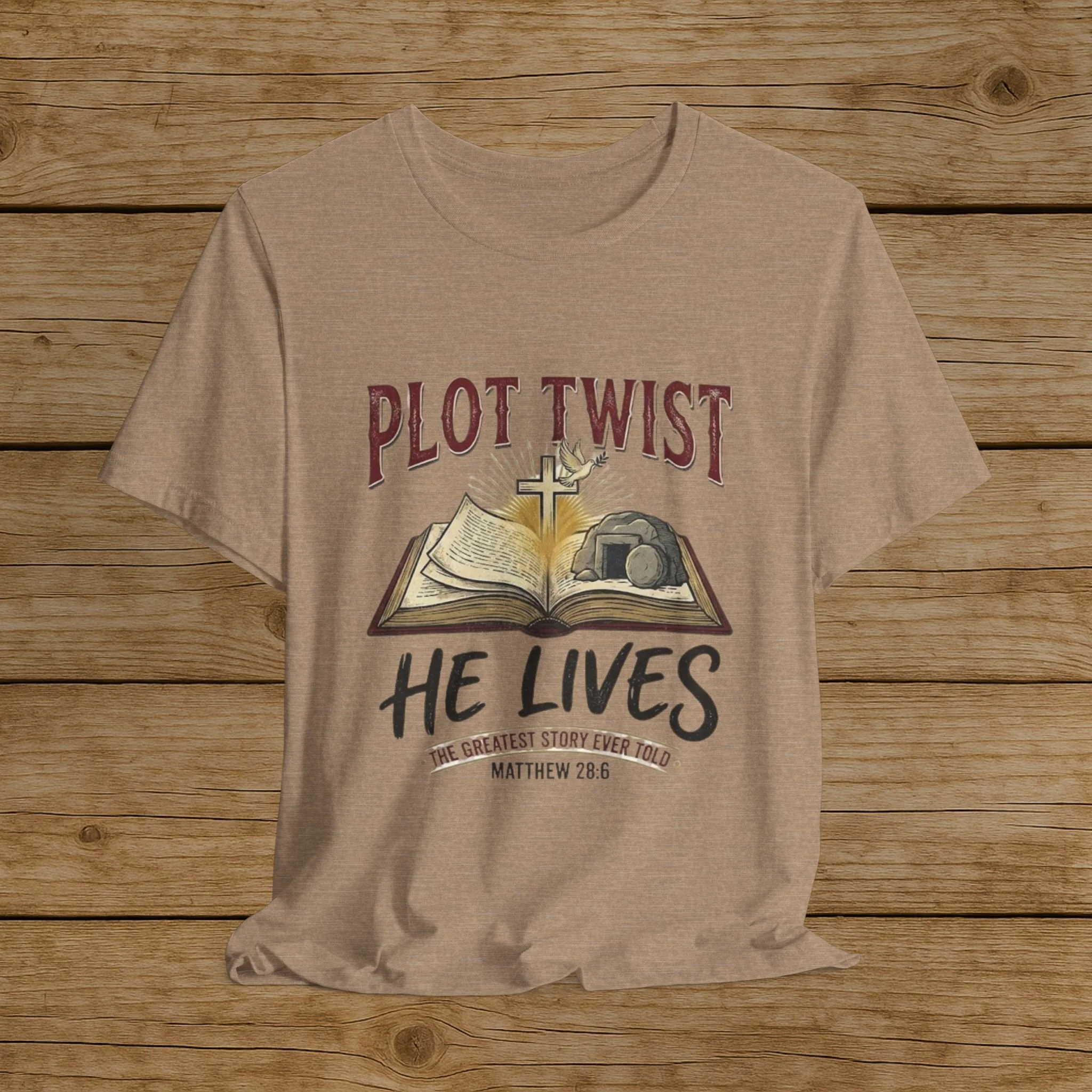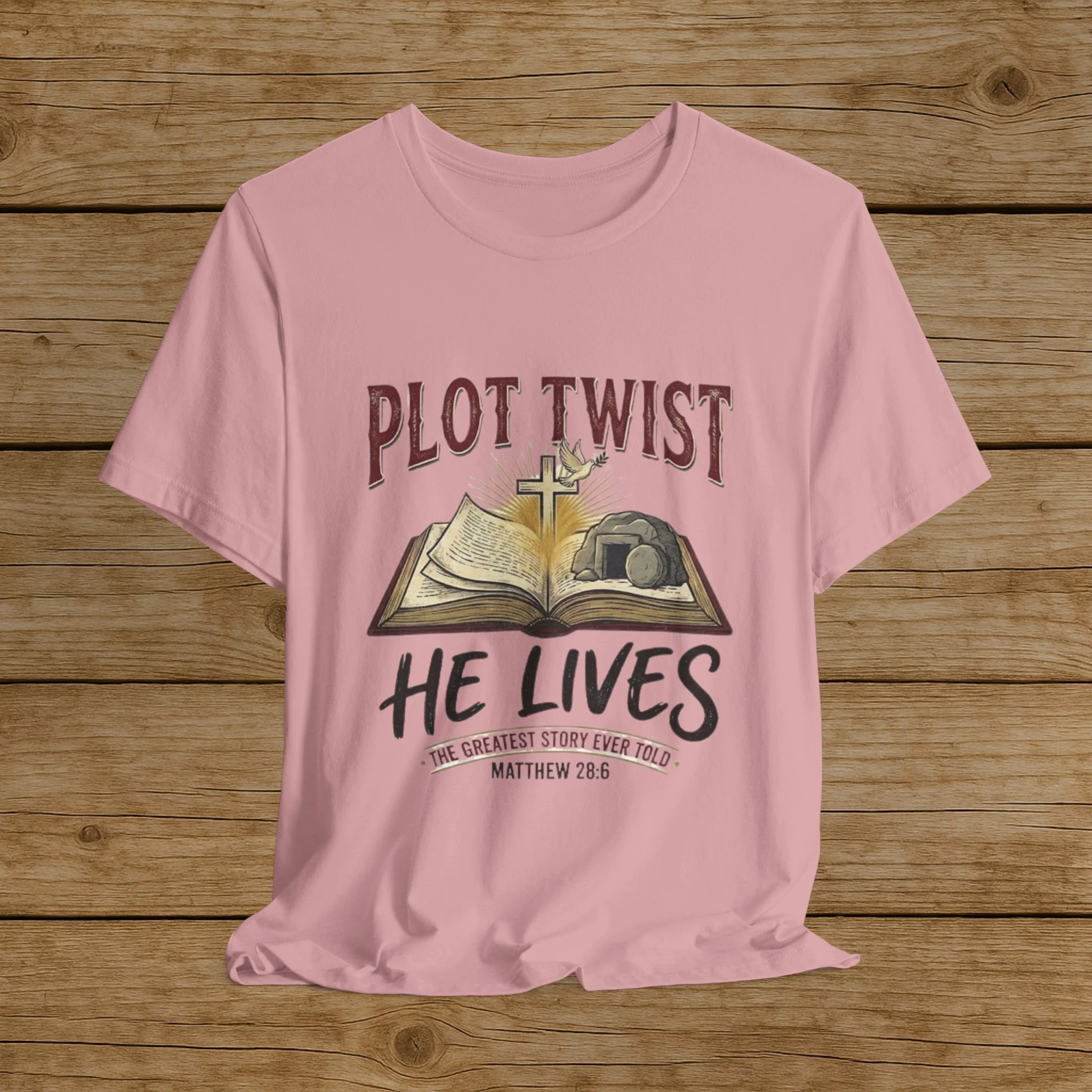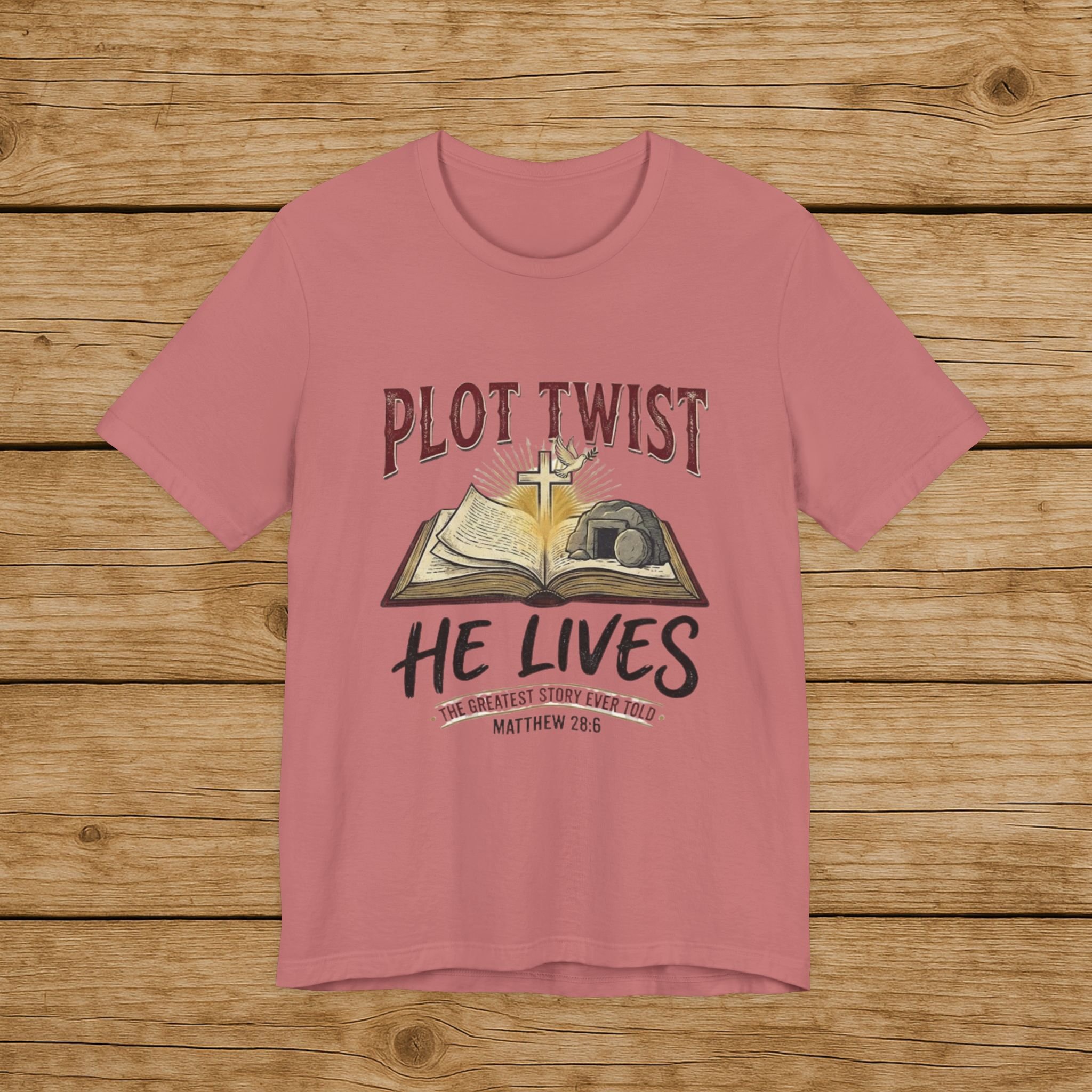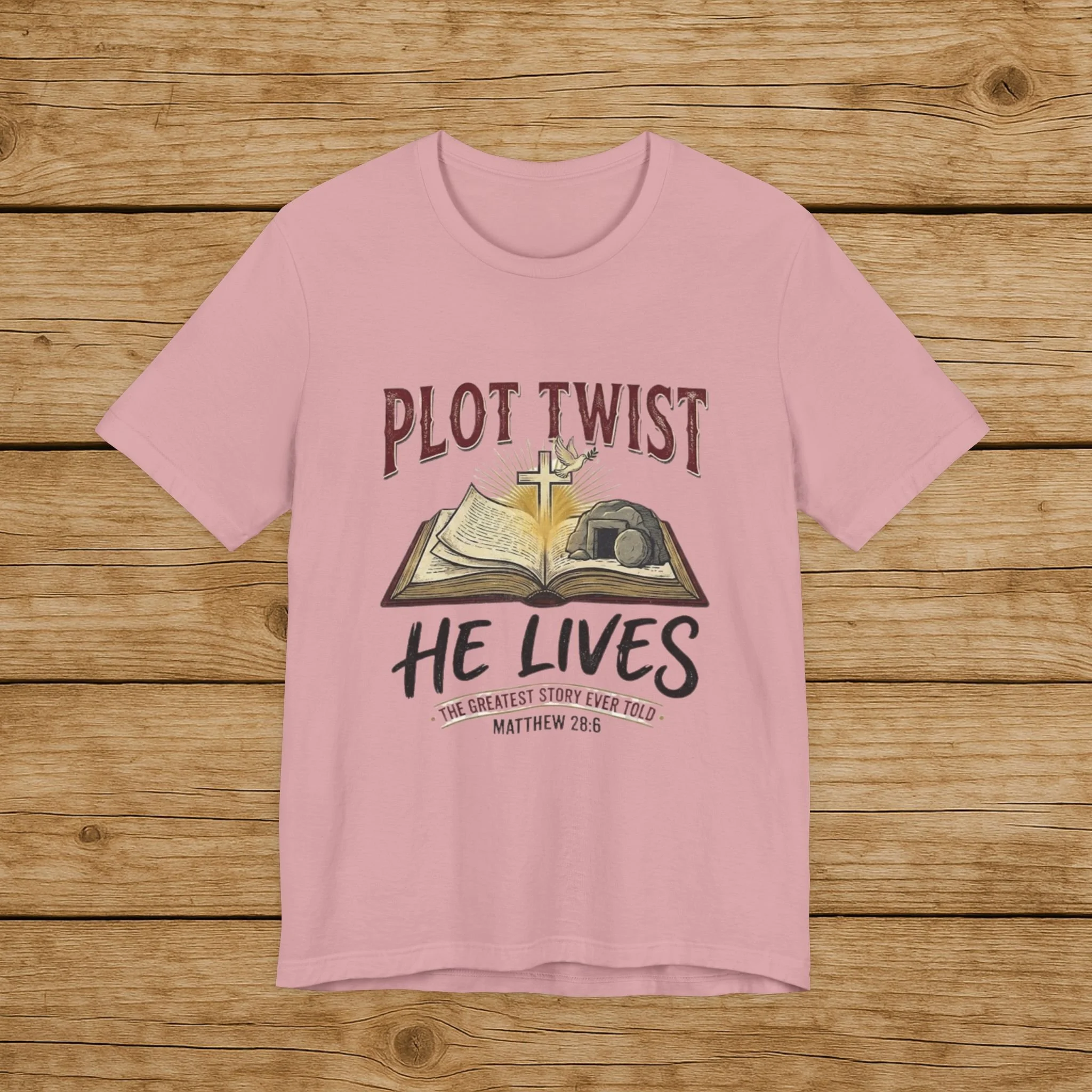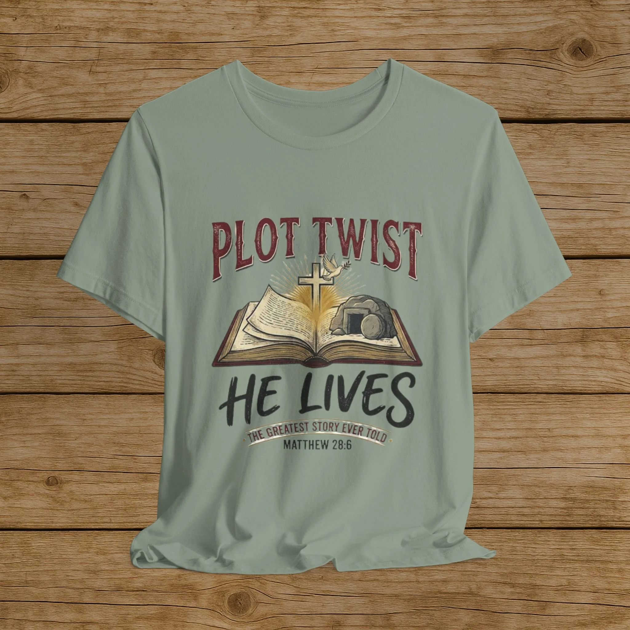 Plot Twist He Lives T-Shirt — Christian Easter Bible Verse Tee (Matthew 28:6)