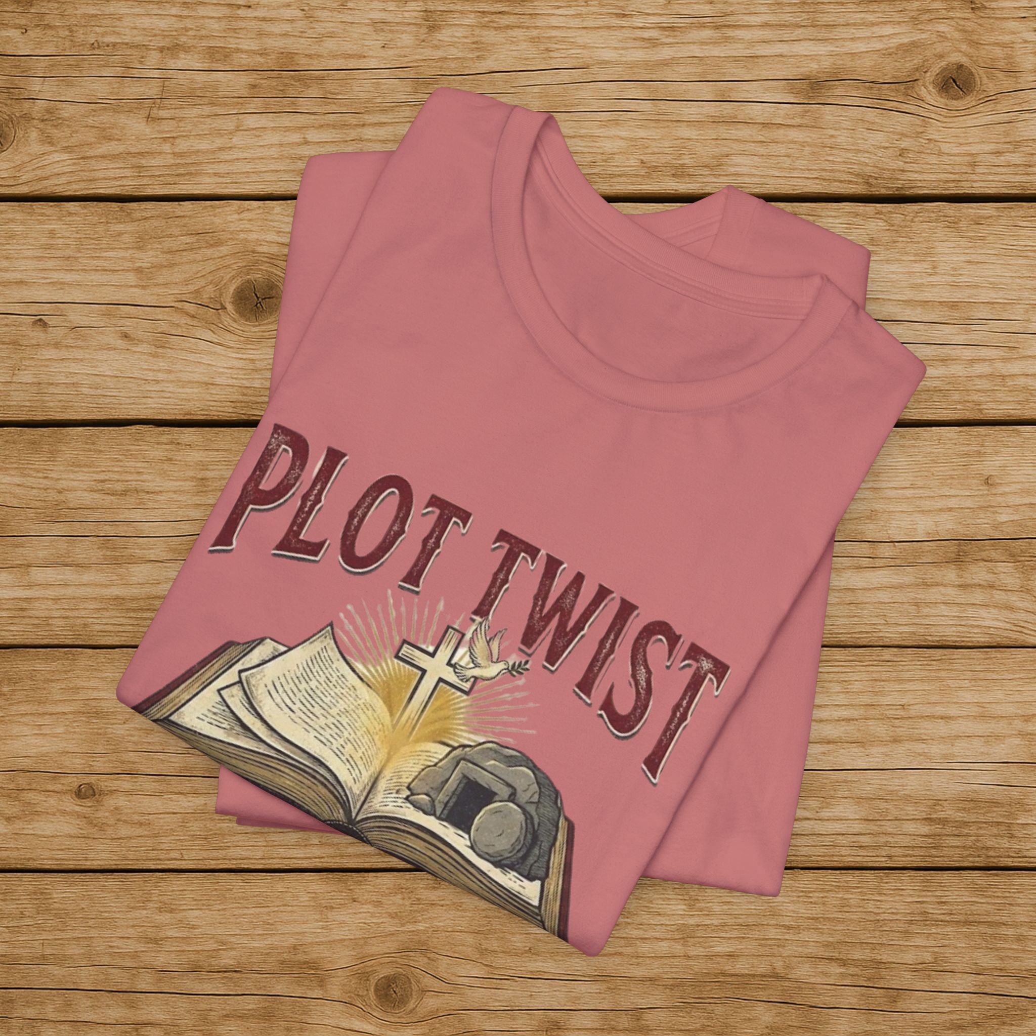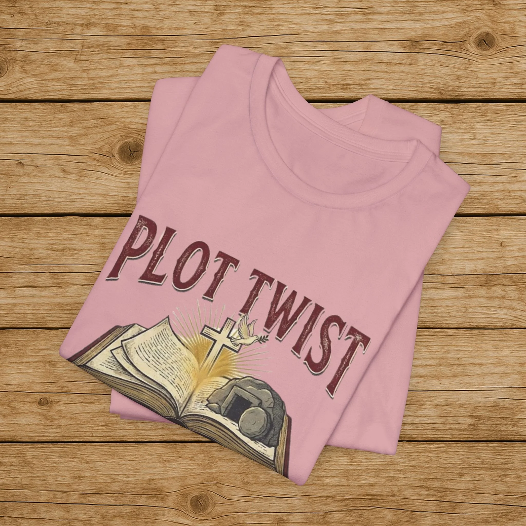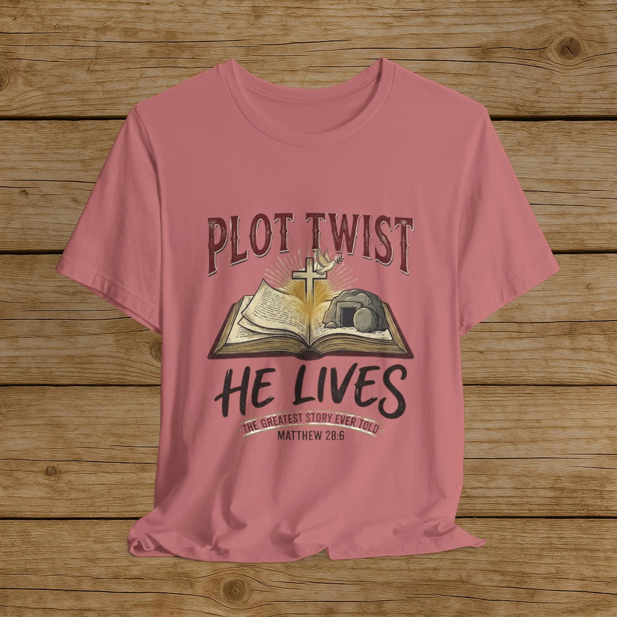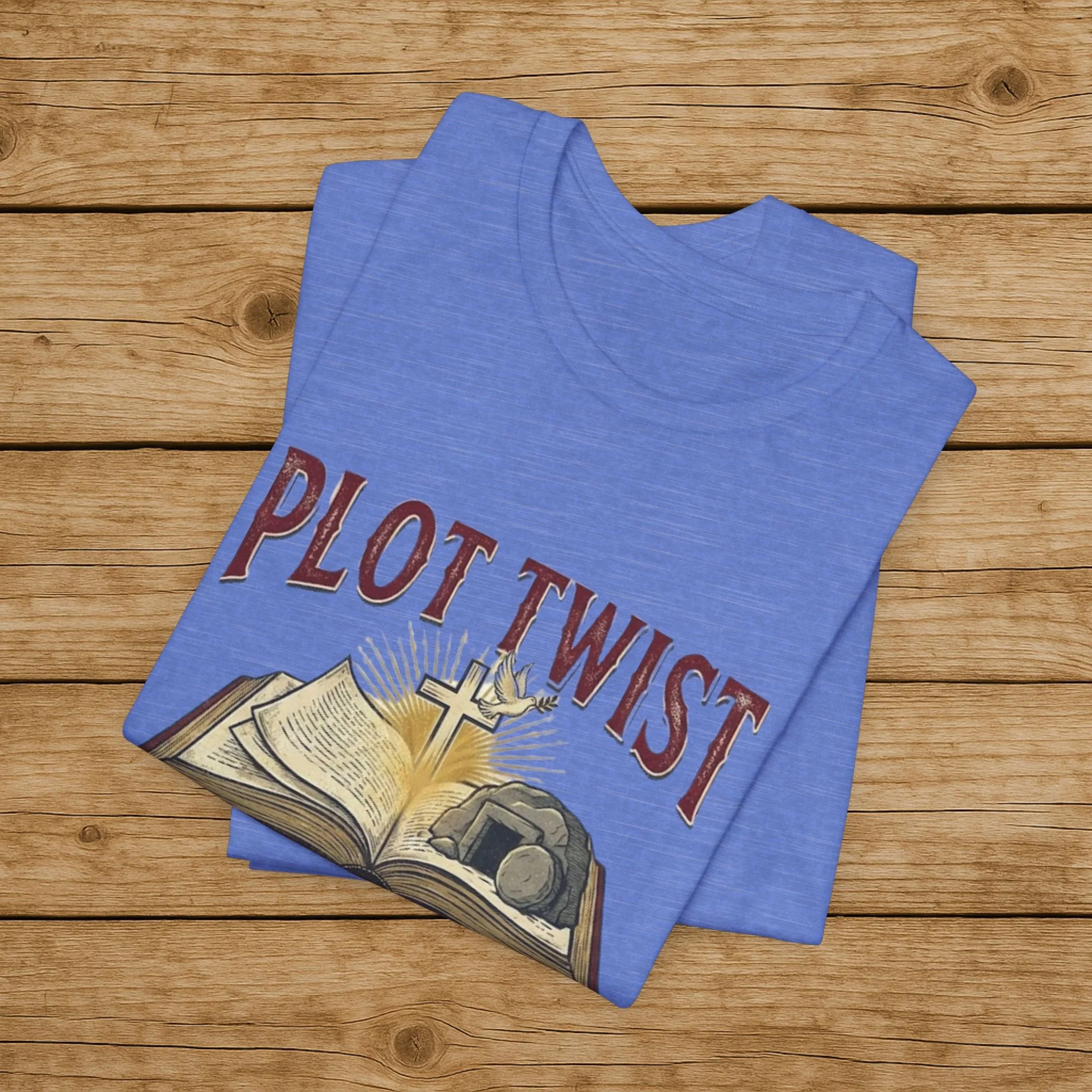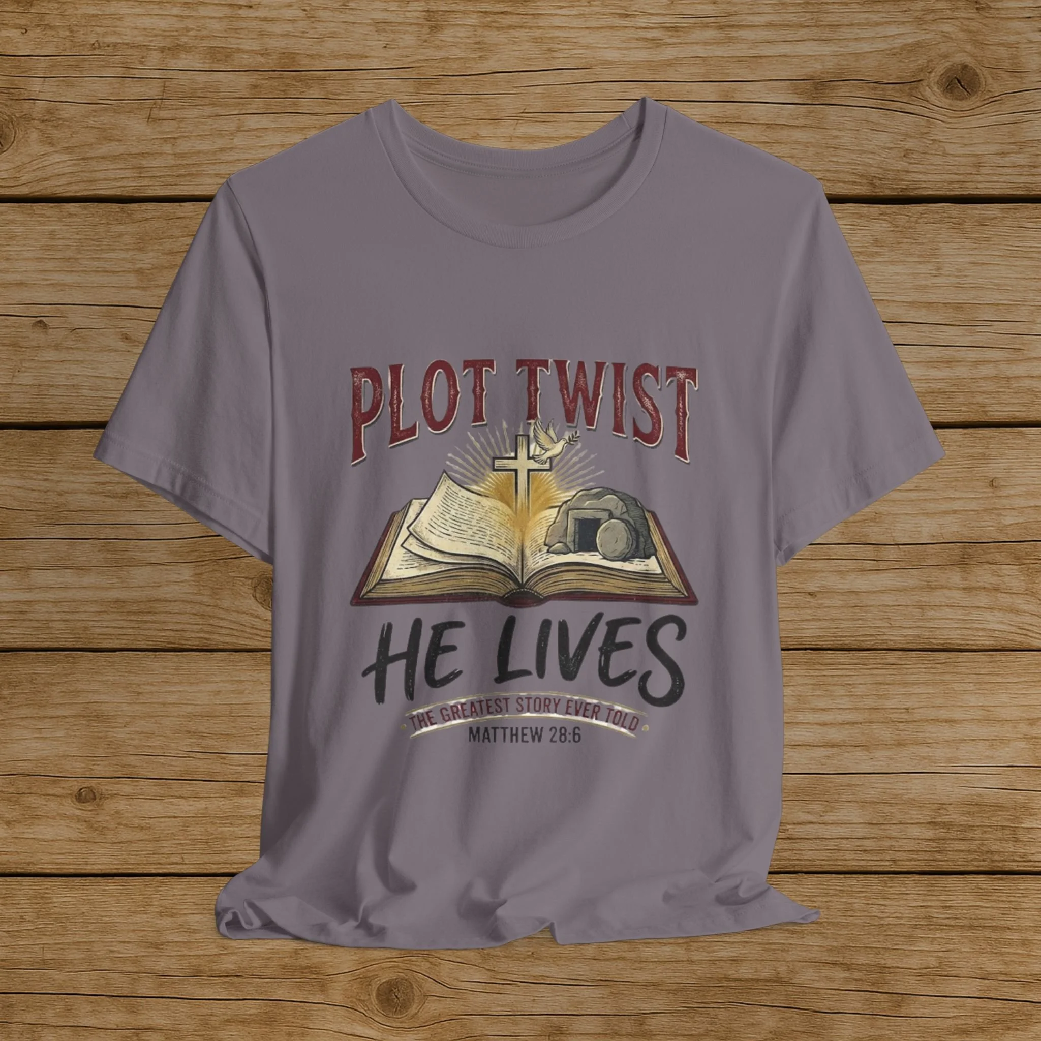 Plot Twist He Lives T-Shirt — Christian Easter Bible Verse Tee (Matthew 28:6)