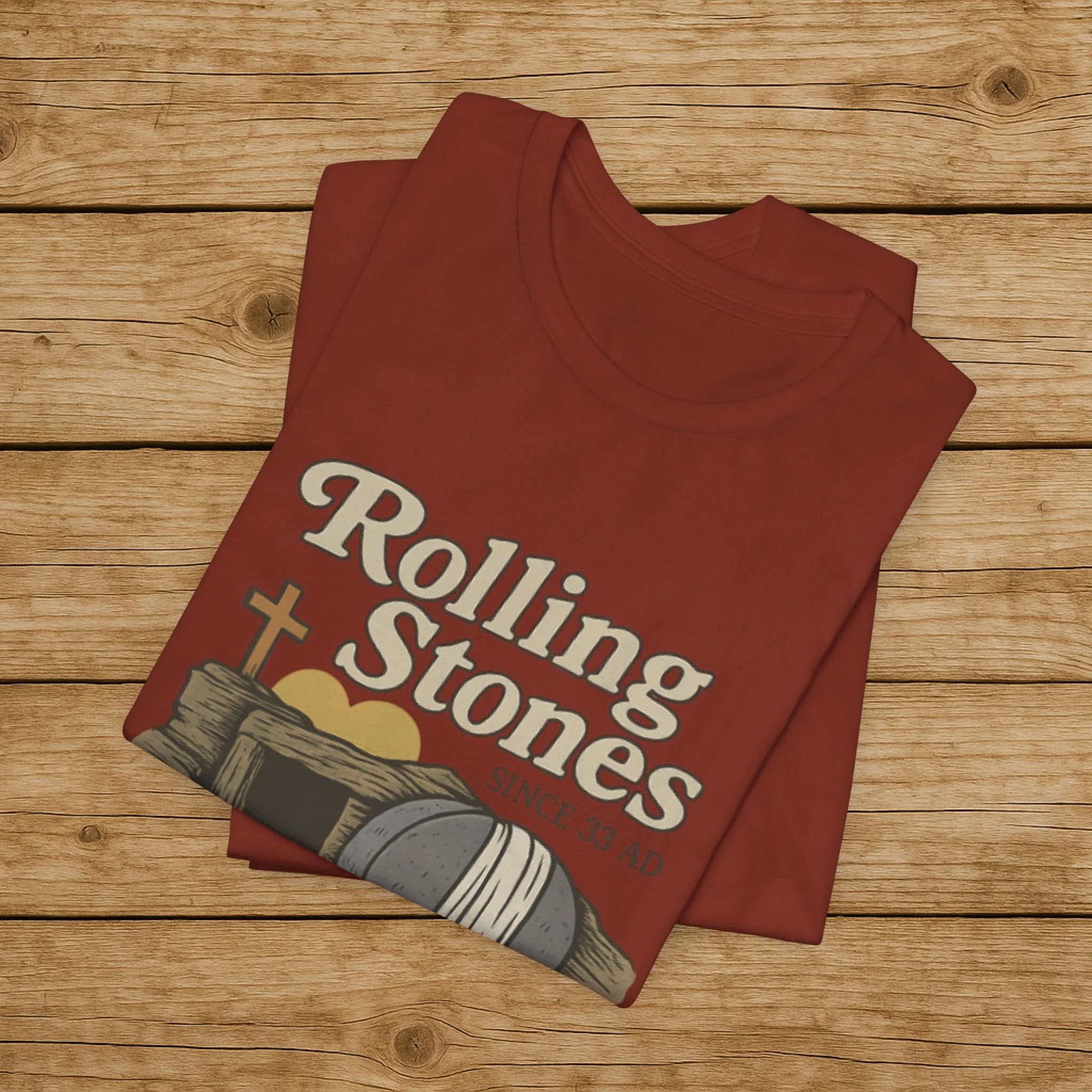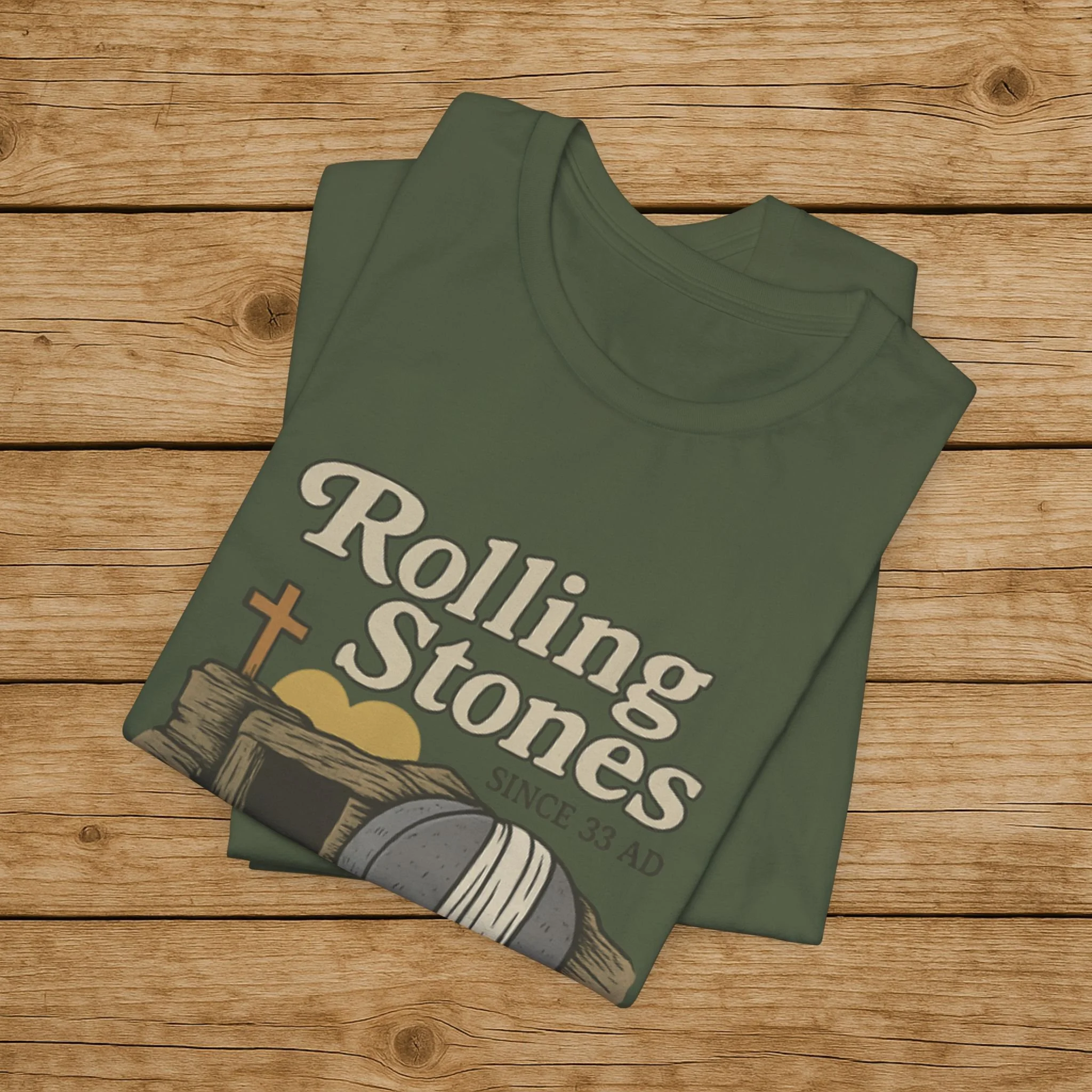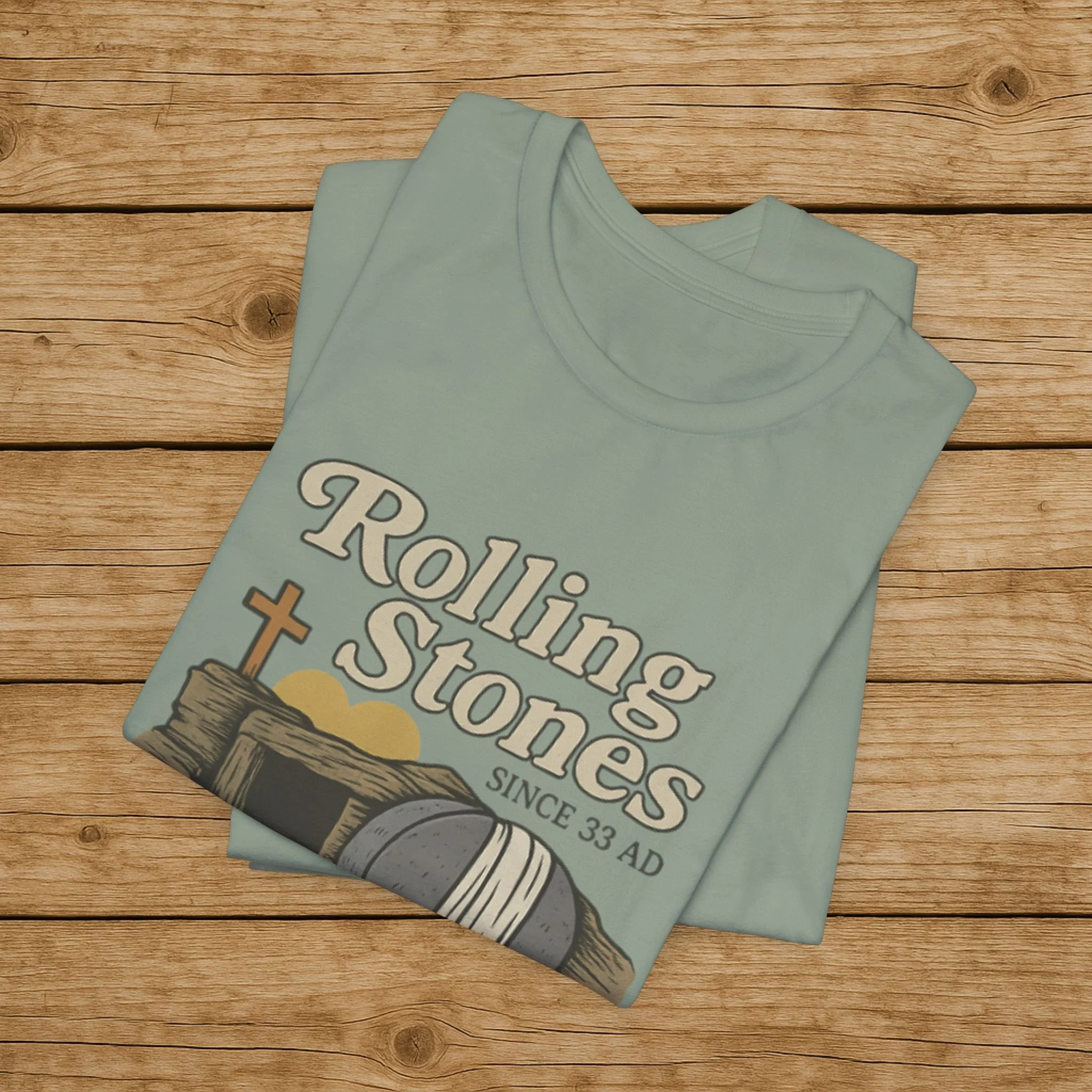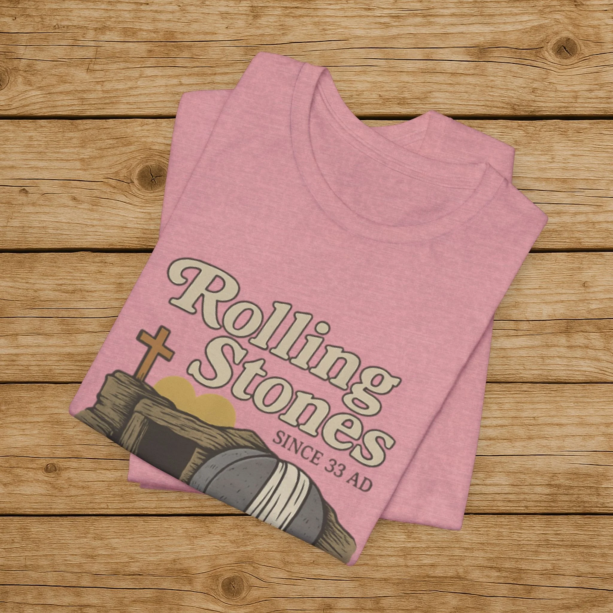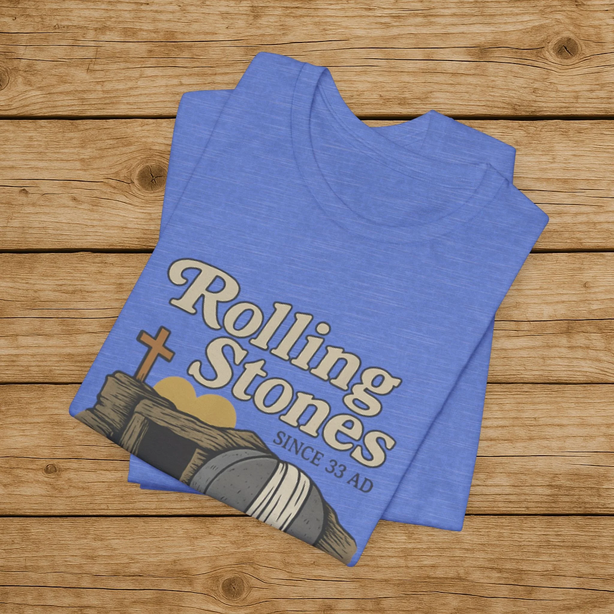 Celebrate the message of the Resurrection with this Rolling Stones Christian shirt inspired by Matthew 28:2. Featuring the empty tomb and the stone rolled away, this faith-based design is a powerful reminder of the moment that changed history.