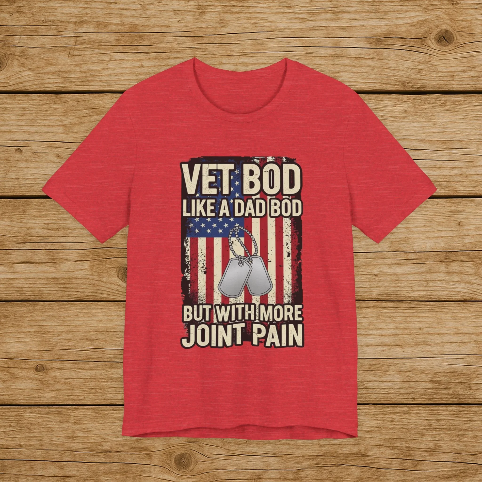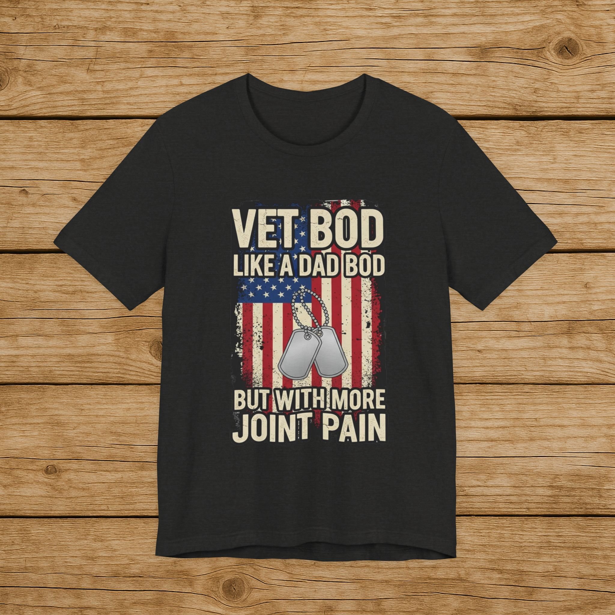 Vet Bod Shirt Funny Veteran Gift Veteran Humor Shirt Military Dad Tee Patriotic Veteran Shirt Joint Pain Veteran Tee Army Veteran Shirt Navy Marine Air Force Gift Military Retirement Gift Dog Tag Shirt USA Flag Veteran Apparel